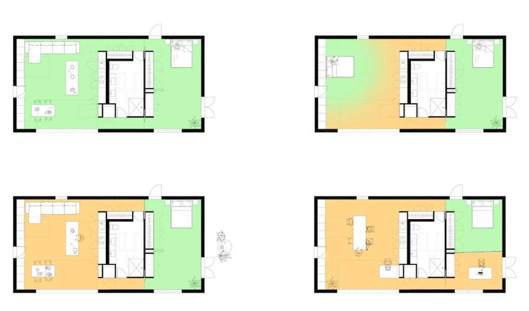- Flexibility to change the configuration of the space to accommodate one or several people at a time, and to allow for different family structures in the future.