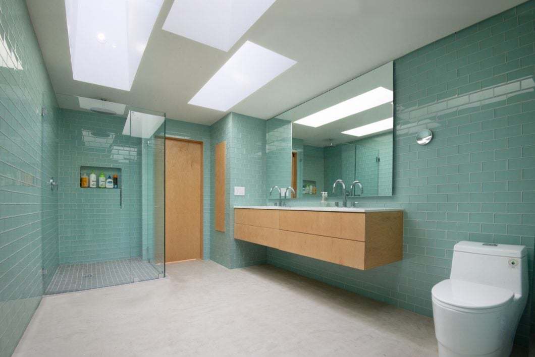 The architectural solution that was provided took the shape of a box that houses the plumbing for the kitchen, part of the storage areas, and the bathroom with three skylights. This box is located central to the floor plan for better distribution of different spaces and to allow for flexibility and change.