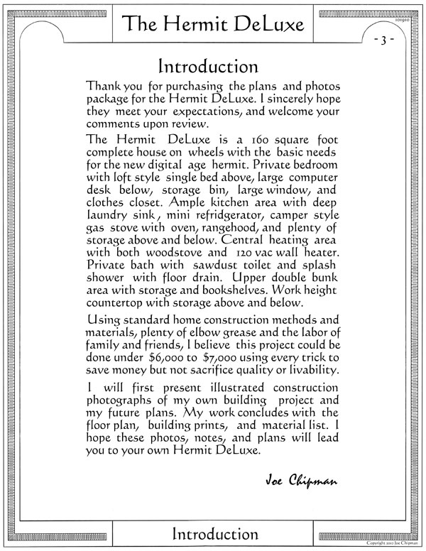 Joe Chipman has updated “The Hermit DeLuxe” plans as he has been building this tiny house on wheels and making a photo journal of the process as well updating any changes to the plans. The plans now consist of a 68 page ebook with detailed photos of the construction. I’ll let Joe tell you more about it.