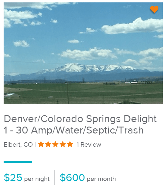 Situated between Denver and Colorado Springs, this listing (along with several others on the same property) is owned by our Featured Host of the Month, Curtis. Curtis and his wife are open to hosting both tiny houses and RVs and their property is equipped to handle anything! Enjoy full hookups, amenities and the great mountain air here.