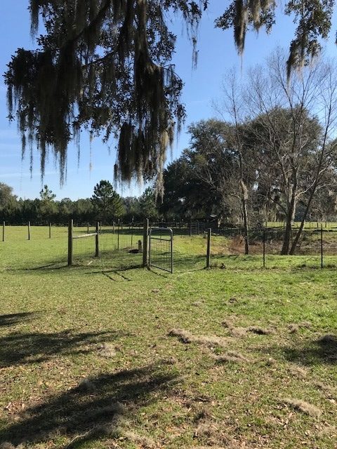 Goats, chickens, ducks, donkeys, a fish pond and a couple of horses tucked in fenced pastures with mature oak and cedar hedgerows. Easy access to water and electric. With over 10 acres on their farm, they are open to having your animals, as well. 30 minutes to Gainesville city limits, but only two minutes to the Santa Fe River. Don’t miss her vintage yellow 5th wheel!