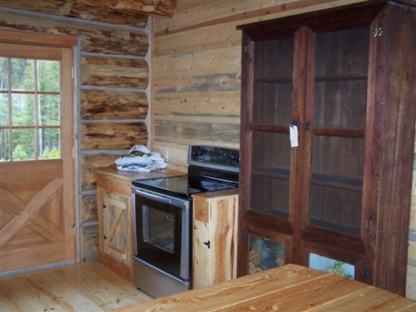 Beautiful! I really love these people’s work. The customer chose all electric appliances and heat, so even though the property looks remote, it must be on the grid. Also, it must be open enough for them to truck in the assembled cabin.