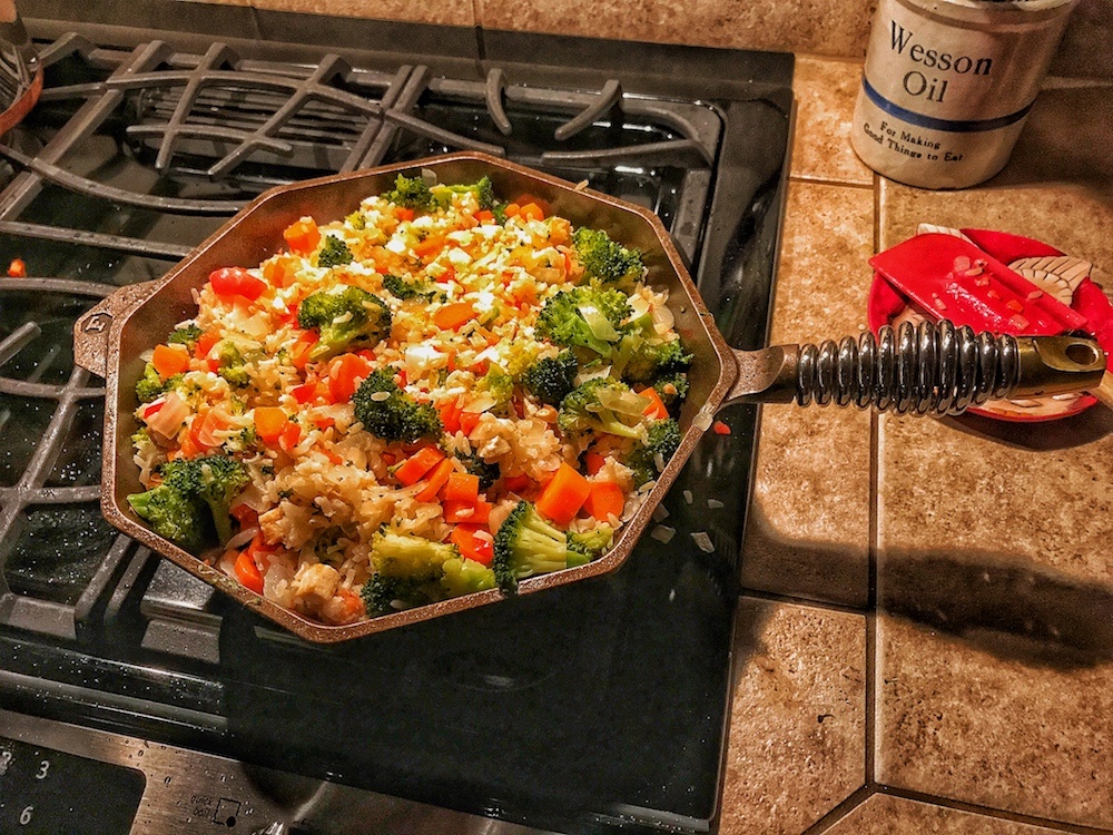 The next dish I tried was another favorite around our home. A tofu, vegetable, and rice dish. I mainly used the skillet to saute the vegetables and tofu and then added the cooked rice to it. Another great meal!