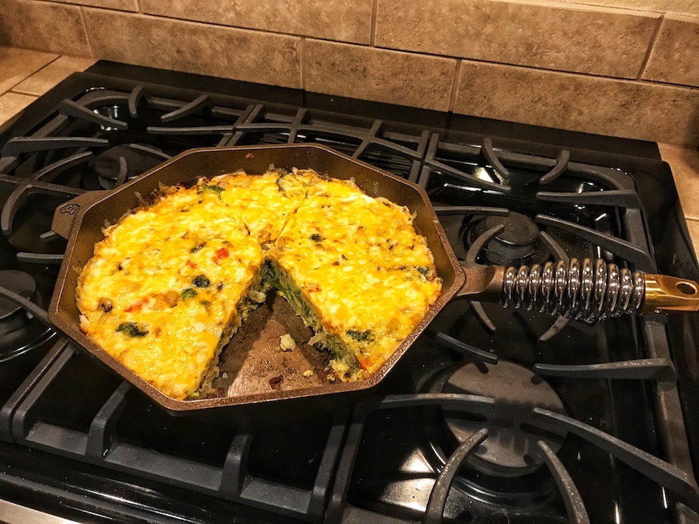 I’ve always wanted to try cornbread in a skillet. With the heat of the cast iron being held so close to the cornbread, it came out with the edges done perfectly (I’m a corner piece guy). As the skillet becomes more seasoned I found that I could just slide the cornbread out of the pan once it cooled a little. I’ve already done it again as well as another frittata.