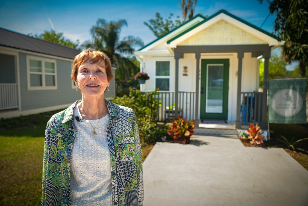 Peg’s tiny house sits in a small neighborhood of code-compliant, foundation-based small homes in Oviedo, Florida. Everyone owns their own lot. Fortunately, for Peg, she gets along wonderfully with her neighbors. Her daughter also lives close by. All these factors provide a safety net for Peg but also much enjoyment.