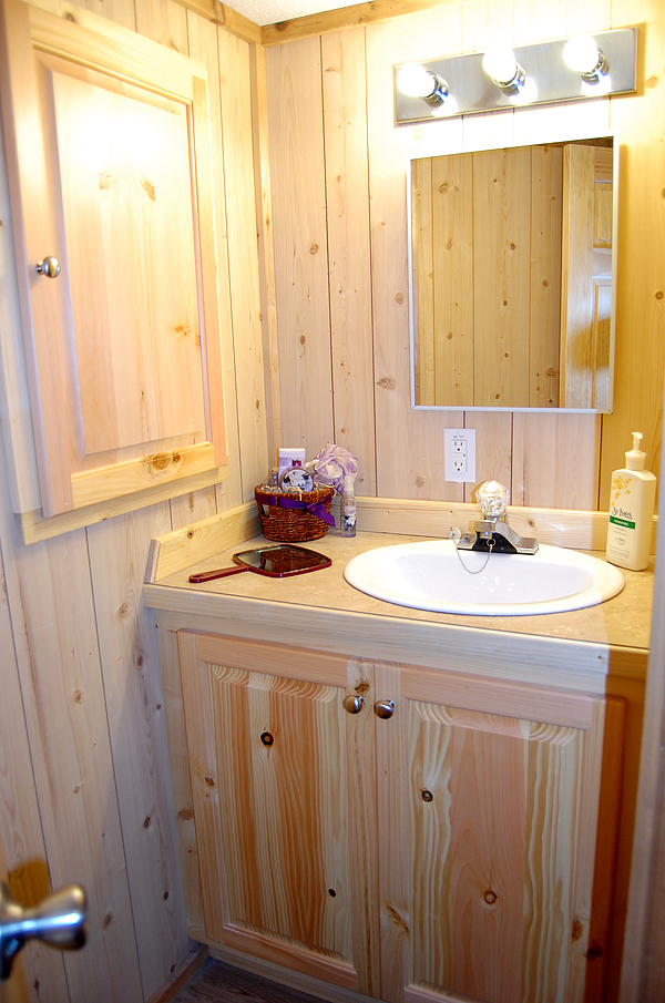 I still get tickled coming in and out of a room, looking around at the rough, pine trim everywhere, around doors, windows and corners giving the cabin the rustic appearance I long desired.