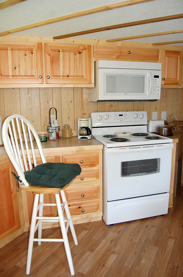 Speaking of floors, because I have 13 indoor pets rather than oak flooring the manufacturer put in wood-grain linoleum. It is easy to sweep and to mop up spills, which goes to living simply. Oh, not the 13 indoor animals, but sweeping, mopping and cleaning surfaces since it only takes minutes to go from one end to the other of the cabin hitting all the high and low spots.