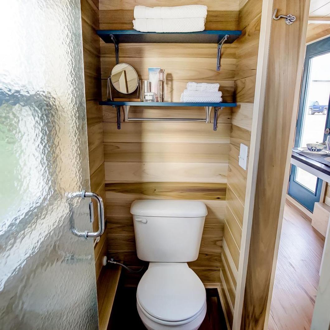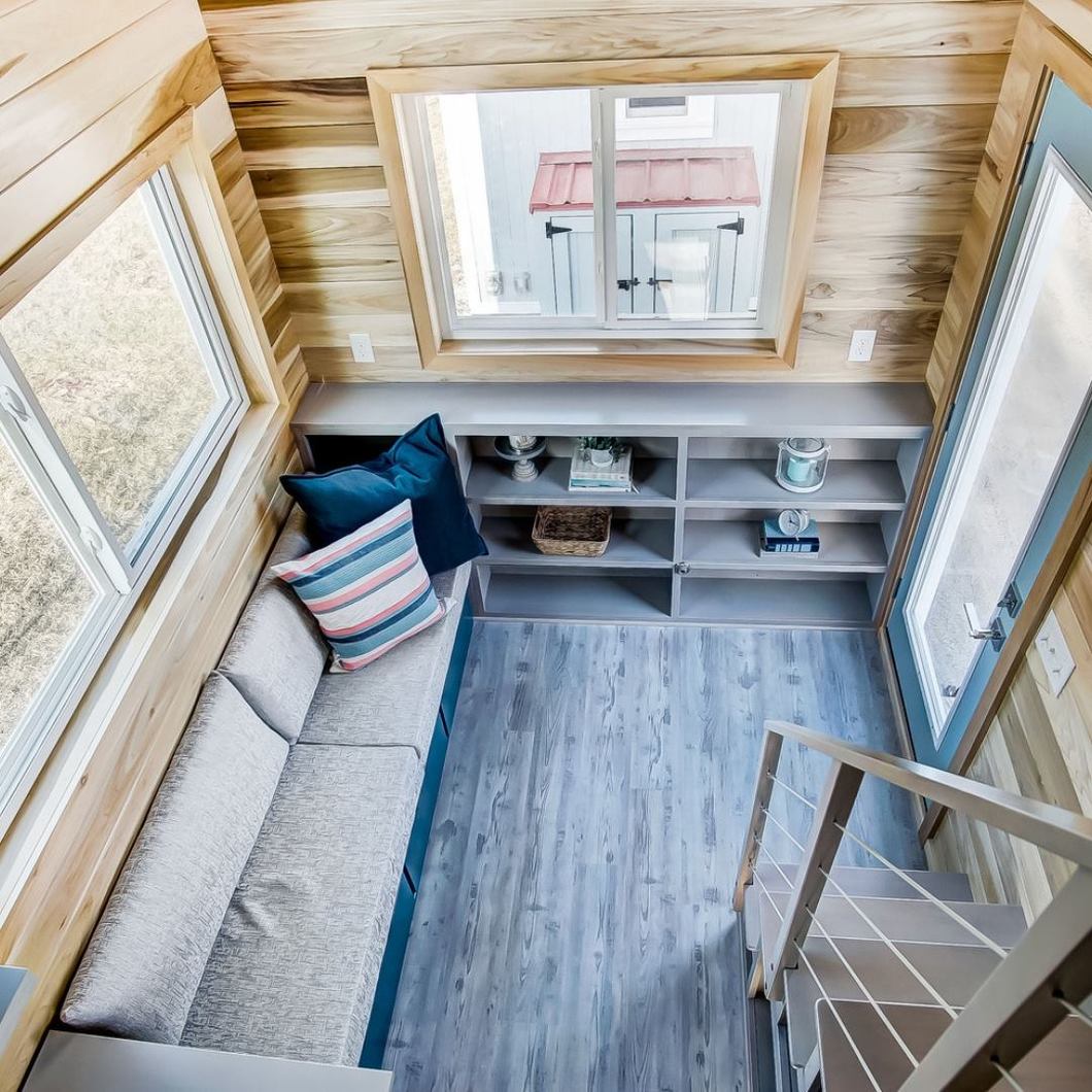 Each of the tiny homes have a name and distinct exterior features. The interiors are contemporary and open with real wood, full-size appliances and bathrooms with showers. Choose from the 244 square foot Pamlico with two queen beds or the 188 square foot Alligator with a built-in bay window. Other homes to choose from include the bright blue Scuppernong and the red-roofed Neuse.