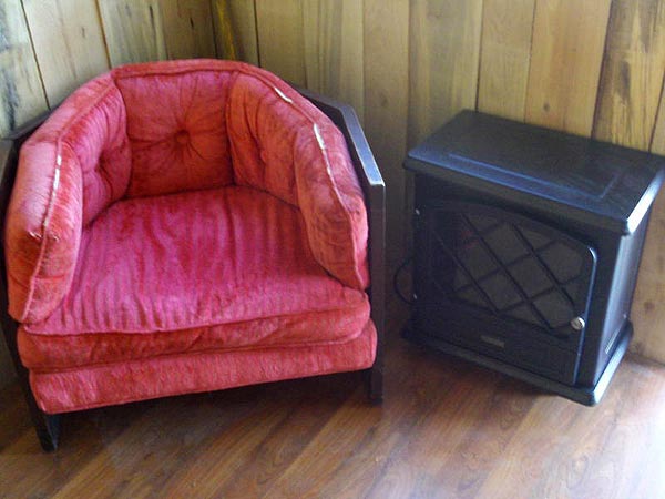 As for heating and cooling the cabin already has a small electric heater that looks like an old wood buring stove complete with faux fire, the cabin also comes with a window type heat/air unit , it hasnt been installed yet but it will be int the wall opposite the door. A wood burning stove could easily be added as well.