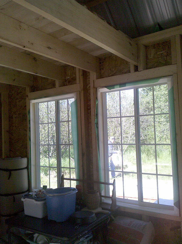This summer we had a Jotul 602 woodstove installed, by September it is needed for heat at night! I’m very happy with the house. I bought seven windows made for a house at the local home store and they fill it with light.