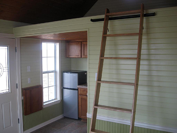 I find the first picture most interesting. So far I thought there were two ways to move a tiny house — it’s on a trailer or on skids. This appears to have wheels on the back end only? Their website has a couple more pics, but no detail about it. I like this idea…at least it’s one more way to be mobile.