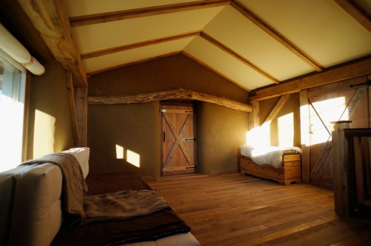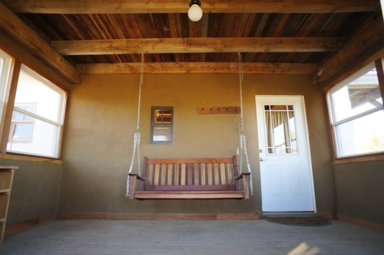 It has a living roof, for which reason I like to call it the Chia Pet. (You’ll understand why in summer, when scads of wild flowers transition from vibrant green to a shock of numerous colors that change as the year wears on.) Insulation is accomplished with sturdy straw bales sheathed in earthen plaster.