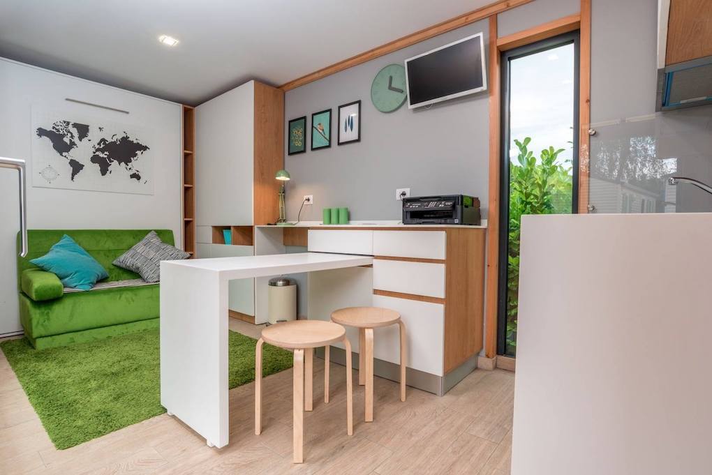A tiny house is energy efficient, environmentally friendly, easy to clean, easy to relocate, cheap to redecorate and the delivery and fitting are done in two days.