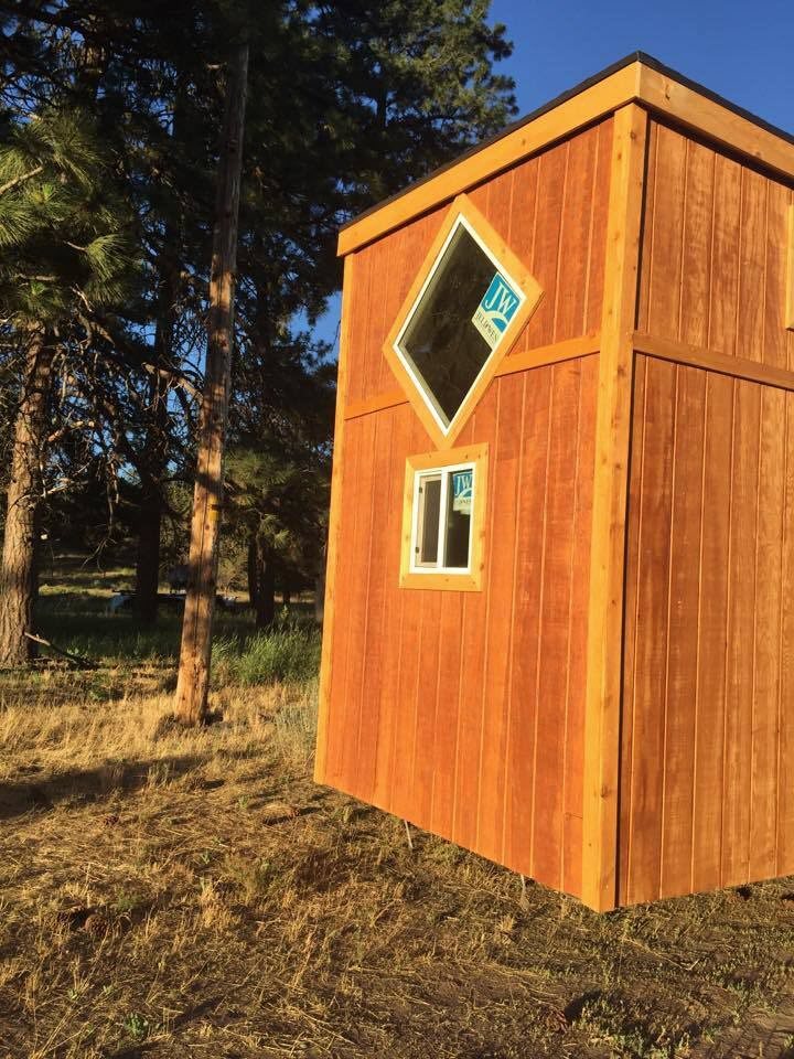 Christina Mendez currently has a shell of a tiny home that is 35 feet lengthwise 8 feet in width and 13 ½ foot tall. It is a two loft style; back loft 9×8. front loft 10×8. The is bathroom size 9×8; living room 10×10. This started as a hobby with the intent to live in it but we were unable to find funding to complete it.