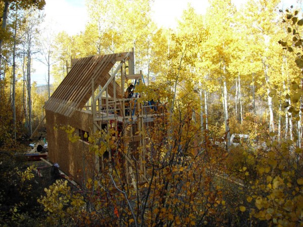 As for the structure itself as its at 8’500′ it was designed for heavy snow load (with engineered trusses, metal surface, custom fabricated crane set 28′ glue-lam ridge beam), cement board lap siding, etc. – you get the picture.