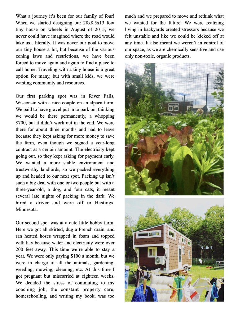 Many times the home is just a stepping stone to another part of your life. Emily Gerde shares the changes her family has gone through during their tiny house journey in this month’s issue.