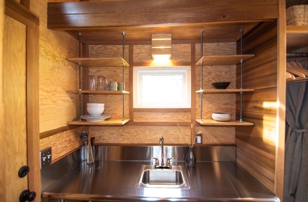 The Salsa Box tiny house incorporates a simplified construction process using weight, energy, and space-saving measures. It was originally built and designed as an instructional model to give workshop students a clear look at each step involved in building a tiny home. Compared to the many tiny homes Shelter Wise has designed and built, this is the easiest of them all and by far the cutest!