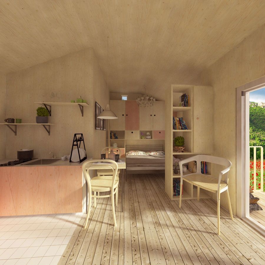 With a bedroom, bathroom, kitchen and living area, this small footprint has everything you need for a tiny house on a foundation. With the estimated cost of building materials at $27,300, this home is in the reach of many do-it-yourselfers.