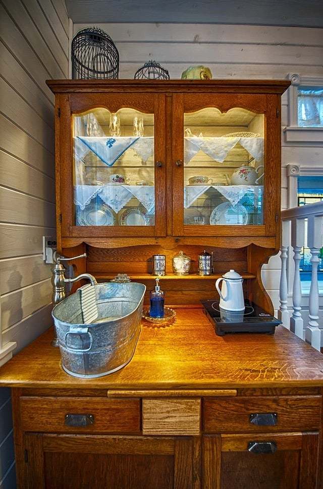 If you love Victorian shabby chic, you’ll love your stay in the Cottage. As you walk up to the large covered porch you’ll immediately take note of classic romantic details – gingerbread gable trim, leaded and stained glass windows and a copper weather vane. Inside, the early 1900’s furniture pieces and all of the architectural accents will thrill antique lovers, but of course the Cottage still provides all the present-day features of home.
