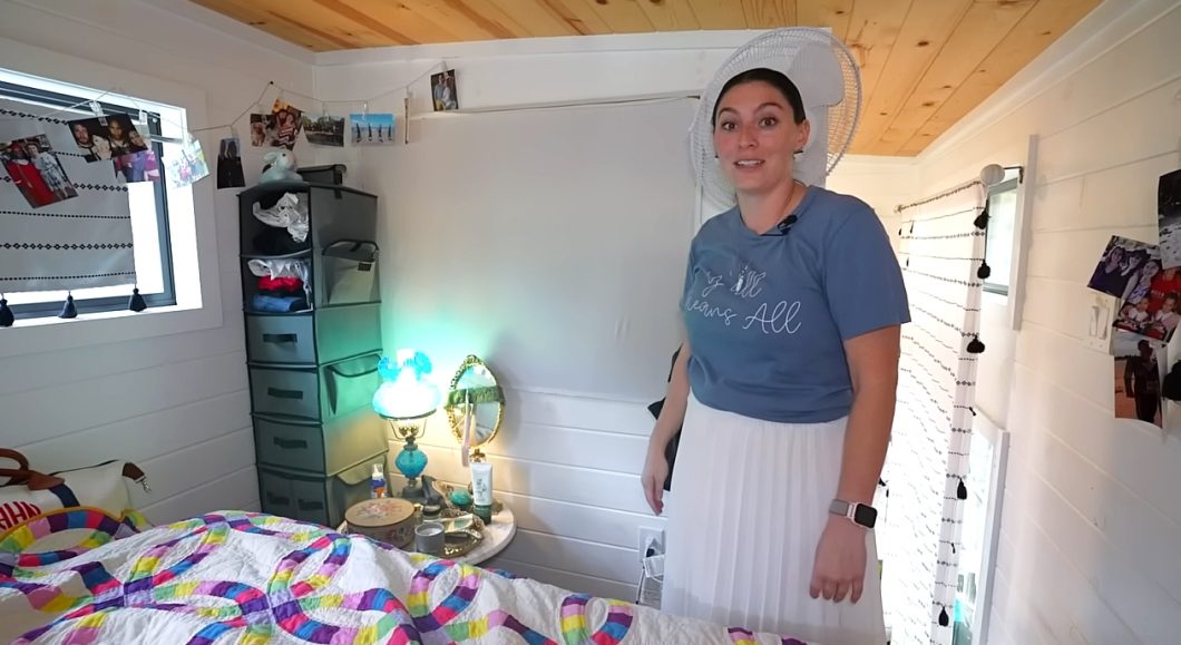 Watch the tour to see more of her unique tiny house with a standing loft!