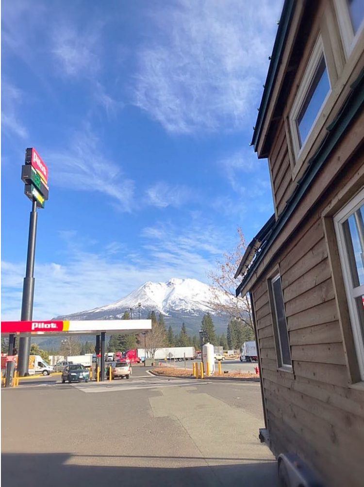 After leaving Santa Rosa, we made our way to far northern California on a stretch of road we have never traveled on with our tiny home, despite our many trips to California. It was one of the most breathtaking drives we’ve ever been on. At one point we were surrounded by mountains. We stopped in the town of Weed (not named for the now legal marijuana) to fill-up at the most beautiful gas station. Well, the station itself was pretty standard but the view of Mount Shasta was incredible.