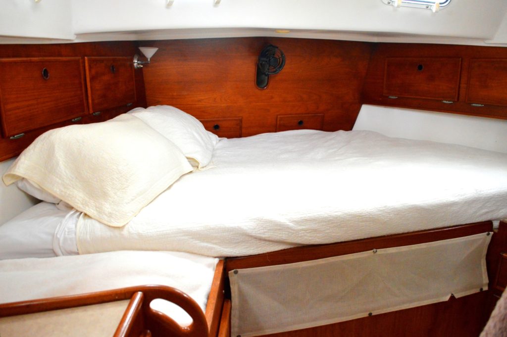 Making the bed on a boat is a decent work out. It’s not uncommon to break a sweat while wrangling the mattress on the inside corners and tucking in all the excess fabric. Maybe someday I’ll pattern out some custom fitting sheets!