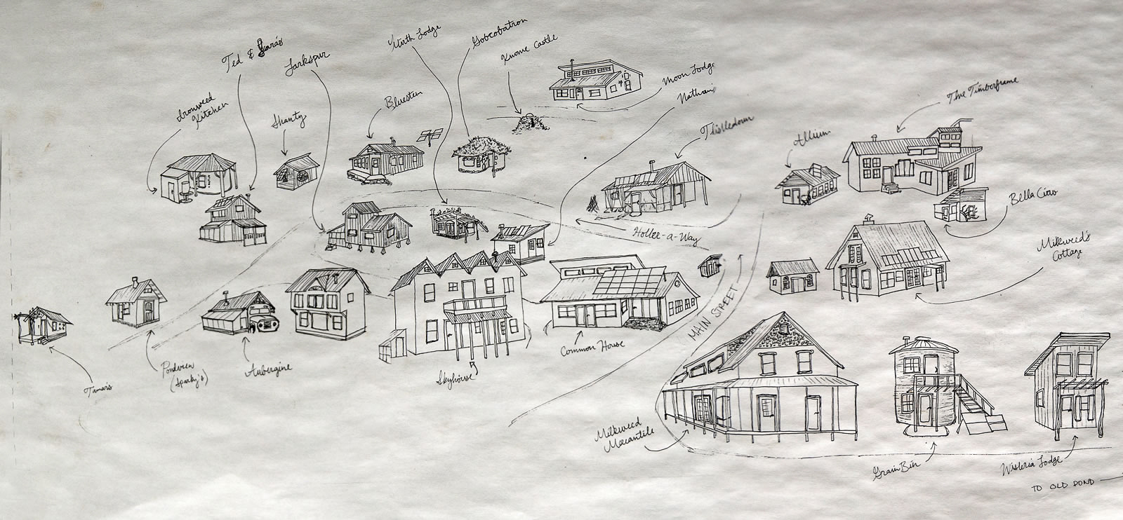 We meet weekly for a community potluck, and regularly gather to sing folksongs, play games or just hang out. We share kitchens and cooking duties. We share four vehicles among over fifty people. And best of all, there is an amazing eco-B&B within a few minutes’ walk from anywhere in the village, called the Milkweed Mercantile. (Thursday is pizza night!)
