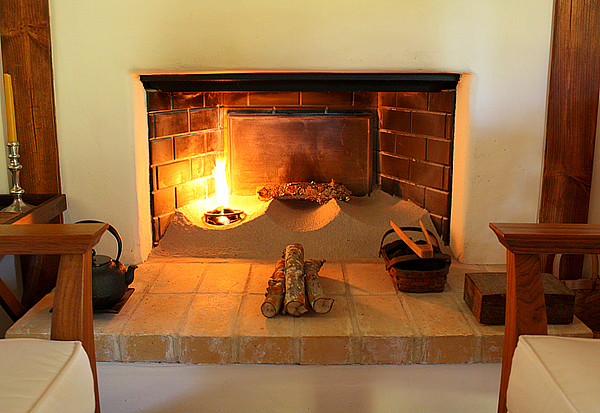 The house can be quite cool in winter, as low as 40 degrees in the morning. It is wonderful how quickly a small wood fire heats a tiny house—at least the part of the house that is next to the fireplace. But you have to be right next to the fireplace. The position of our two chairs is determined by my husband’s reach; he can lean in one direction to adjust the fire, and in the other for a book.