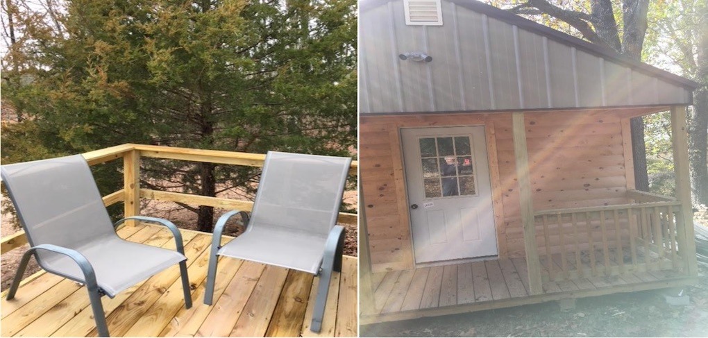 Guests can sit on the front porch and enjoy a relaxing evening after a day of fishing. They can also sit on a deck with a beautiful view. Creating a house from a shell has been one of the most rewarding things I have ever done. I encourage you to create your own place in the woods and either enjoy it yourself or have the wonderful experience of hosting others.