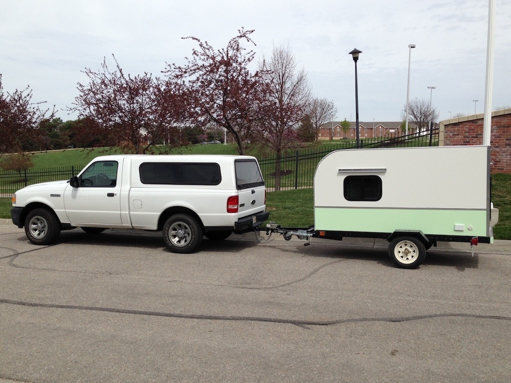 I built a simple tiny camper on a 4×8 trailer last year. My wife and I wanted something to enjoy for short get away camping that could be pulled with anything. We loved the old teardrops and based it off that but had a budget in mind and little trailer we bought used to begin the build. I finished it in about 30 days working on it a little everyday. It’s not perfect and was not intended to be perfect but it met our needs. I designed it with a back door as it was easier for a tall guy to get in and out. As well we didn’t need an outdoor kitchen, plus it saved money.