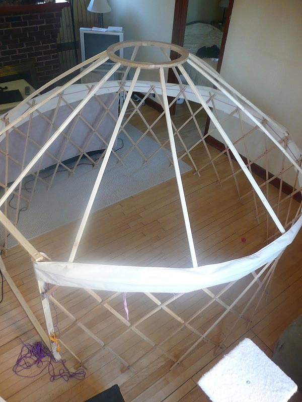 My recent re-post of the construction details at http://northwinddesignworks.wordpress.com/2011/02/28/grants-ger-repost/ provides all the information necessary to begin building the framework for a miniature ger of one’s own. Running out of time towards the end of the project, I had to skim over some of the sewing process. When weather allows, I’ll set it up for a close-up photo shoot of the components not well-illustrated by the current pictures. In the meantime, I’ll be happy to answer individual questions.